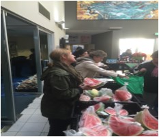Tables of fresh fruit, vegetables, dairy products, packaged goods, drinks, cereals and baked goods are available for the community to select from. With a “help yourself” approach, shoppers are provided with a shopping bag to fill, and encouraged to make healthy selections in a dignified and supportive environment.