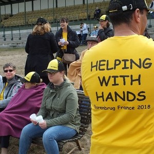 The management of the Fontainebleau Racing Society noticed the wheelchairs, walkers and yellow t-shirts with the text “Helping With Hands”. They were touched by the initiative and came to greet the group to let them know that residents from the retirement home are more than welcome at the race course in the future.