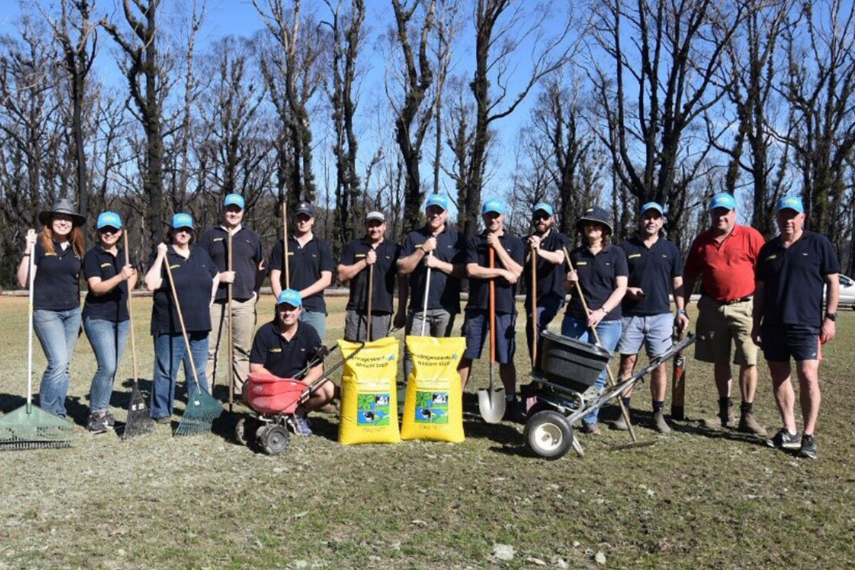 In September staff from the Dandenong South office travelled to Walhalla to do the work over two days. The group cleared the site, scarified the ground and sowed new seed. They also cleared the area, placed a new sign/information post at the entrance to the cricket ground, built some benches for seating and cleaned the track to the entrance of the ground.