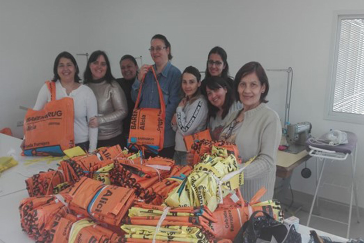 With our discarded seed bags, these women make bags to be handed out to our customers as promotional material. Through this action Barenbrug Argentina was able to make a difference in two ways: